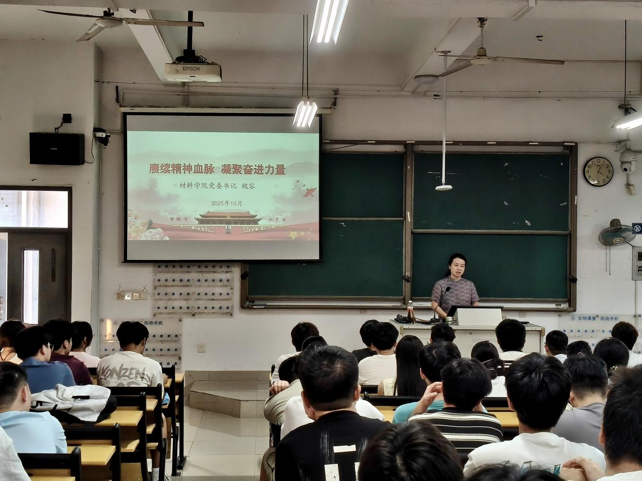 为深入学习贯彻习近平新时代中国特色社会主义思想,加强理想信念教育,10月16日下午,我院党委书记魏容以《赓续精神血脉,凝聚奋进力量》为主题,在博雅楼2-201教室为2025级本科生开展理想信念及党建教育主题讲座。本次讲座由2025级辅导员王庆爽主持。
