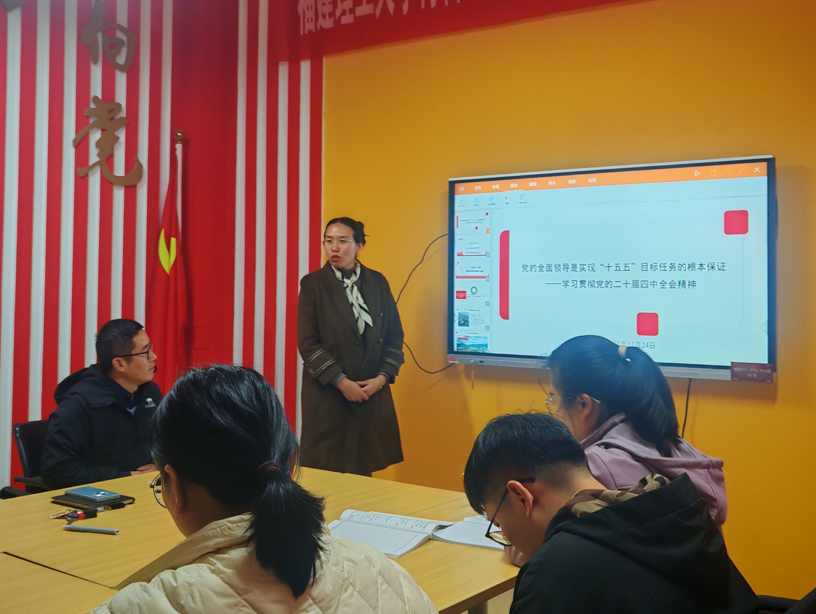 课上,崔院长围绕“十四五”时期我国发展取得重大成就、“十五五”时期党的领导面临新挑战新要求、以全面从严治党实效确保党的领导的实现展开,强调需要坚持党中央集中统一领导,用党的创新理论统一思想,坚持正确用人导向,增强党组织功能,落实中央八项规定精神。