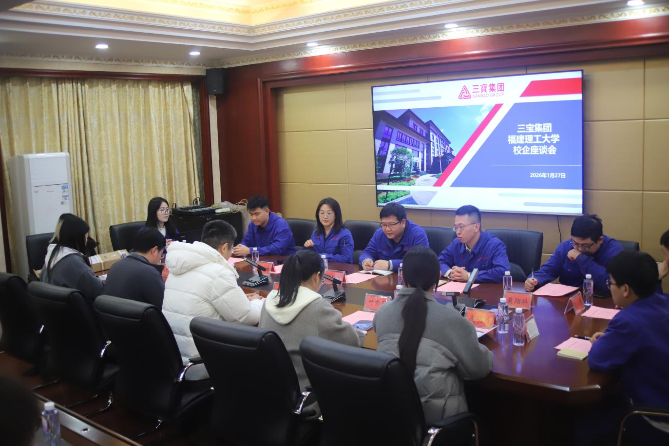 1月27日下午,实践队到访福建三宝钢铁有限公司。公司技术中心硅钢产品部部长邹忠魁与人力资源部副经理陈捷分别介绍了企业在技术创新、产品升级等方面的成果,以及系统化的人才培养模式、职业发展路径和校企合作探索。随后,已在公司入职的往届校友与实践团师生分享了从校园到职场的成长历程与感悟。该公司“为社会培养工匠型人才”的理念与扎实实践,让实践队成员们看到传统产业在新时代焕发的勃勃生机,也深刻体会到个人成长与国家重点产业需求紧密相连的时代机遇。