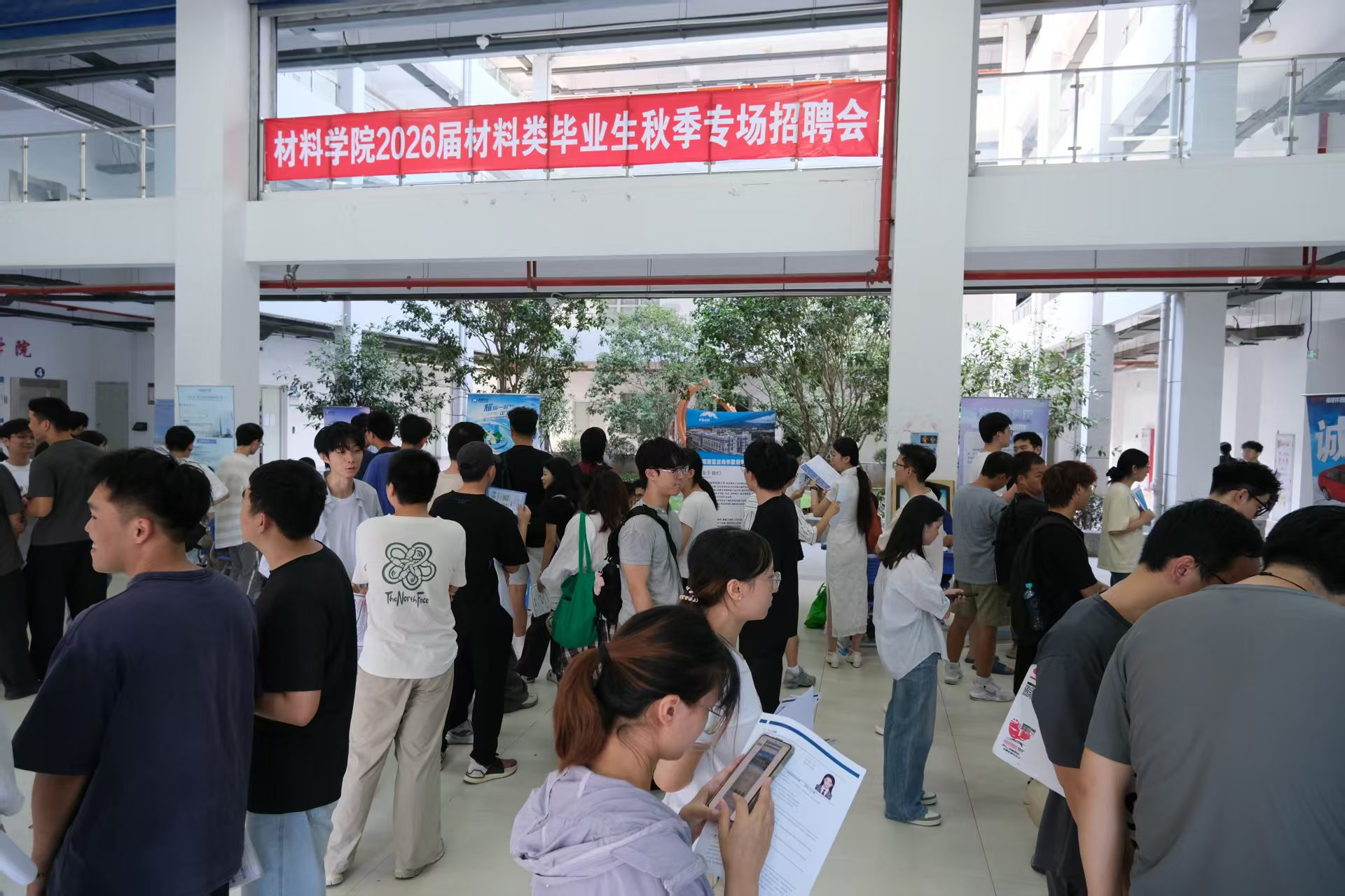 秋风送爽纳贤才,“材子”筑梦正当时。为扎实推进2026届毕业生就业工作,9月27日下午,材料学院在教学实验楼一楼大厅成功举办2026届毕业生秋季专场招聘会。学院党委高度重视,学院党委书记魏容、副书记郑俊挺到现场与用人单位及毕业生亲切交流,深入了解招聘需求与求职意向,标志着学院新学年就业工作全面启动。