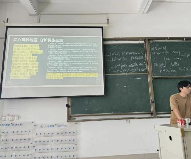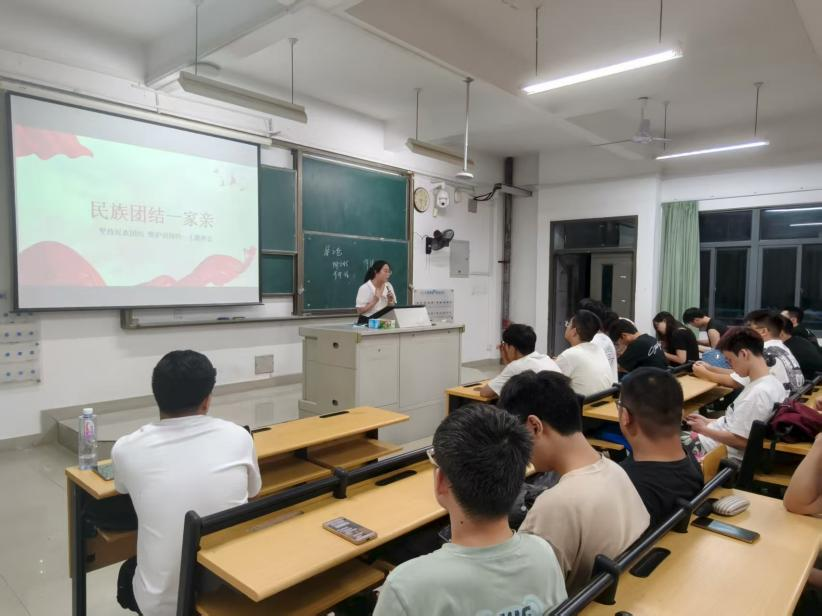 2024级辅导员林培坤围绕“同心筑梦校园、守护民族团结”的主题展开教育。林培坤指出,同学们来自不同民族地区,拥有多彩的习俗和文化传统,这是校园文化建设的宝贵财富。倡导学生在日常相处中,应主动了解并尊重彼此的民族习惯,以真诚的沟通促进理解,以宽广的胸怀实现包容,共同营造和谐、融洽、多元的校园文化氛围。